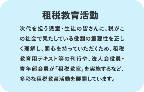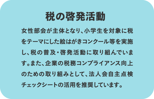 | 租税教室活動の企画、実施など関する事項 | 6月~7月 11月~1月 |