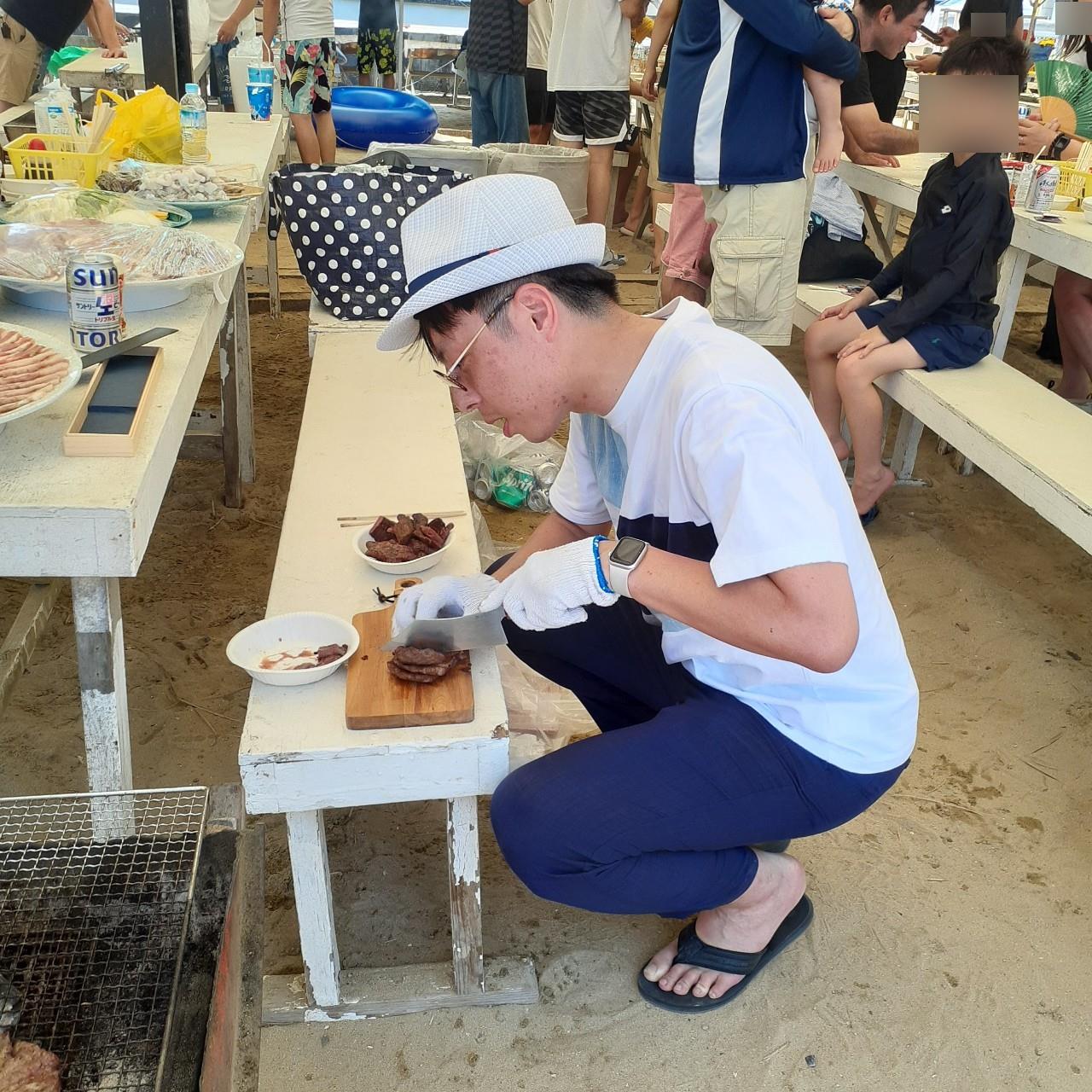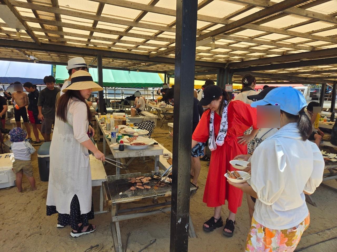 家族親睦海辺でバーベキュー大会