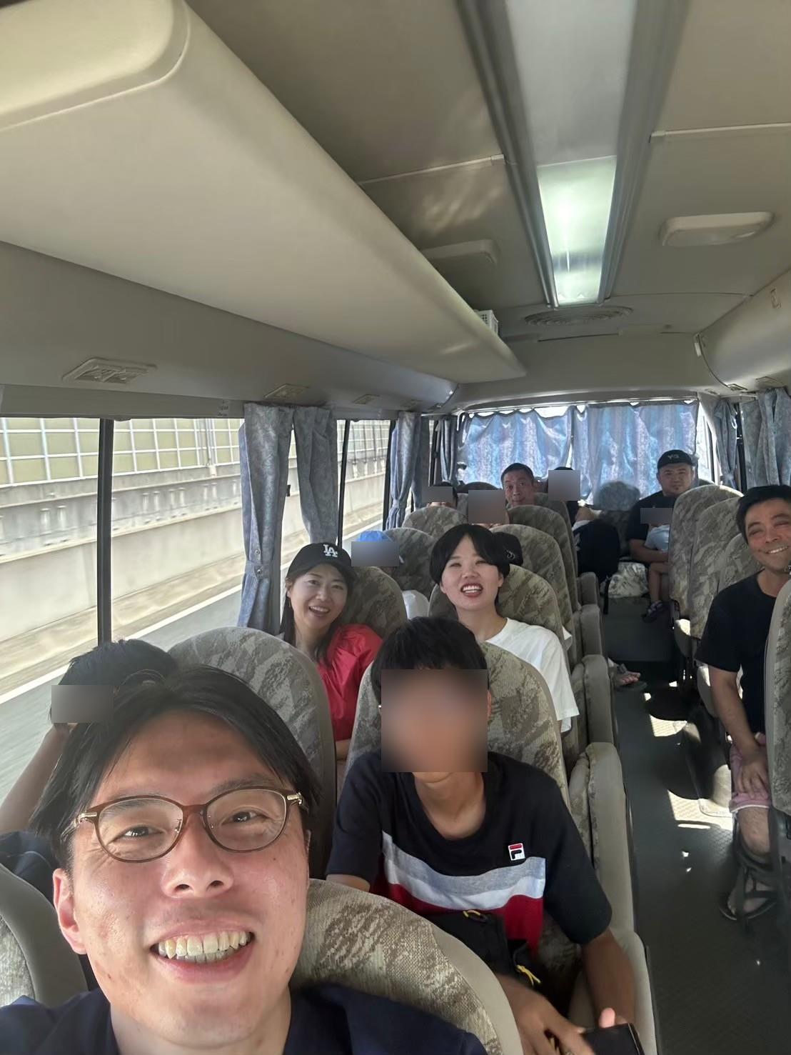 ご家族の皆様と一緒に貸切バスにて会場まで移動、ビーチならではの環境で一緒に懇親を深めることができました。