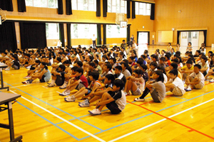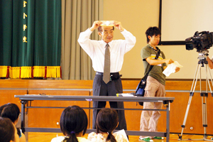 法人会(親会)では7月24日(金)に、西高宮小学校の生徒130名に集まって頂き、租税教育を実施しましたが青年部会の租税教育委員会もこれに参画しました。 -