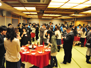 福岡中部法人会青年部は、平成23年3月、福岡市中央区大名にある「福新桜(ふくしんろう)」におきまして、多くの出会いのチャンスを持って頂きたく、また前回大変な好評を頂きまして、第2回『お見合いパーティー』を開催いたしました。 参加人数は、前回を上回る、男女各50名。 各自自己紹介の後、立食パーティー形式のフリータイムで大いに盛り上がりました。 結果、見事10組のカップルが誕生しました。