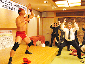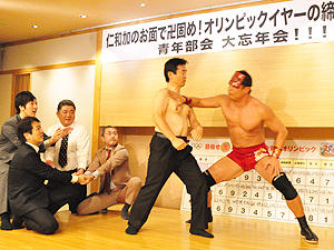 福岡中部法人会青年部は、平成24年12月6日(木)、福岡市中央区天神の福新楼にて、忘年会を開催しました。 ゲストとして、プロレスラーが登場したり、Willを使っての委員会対抗のゲームなどで、大いに盛り上がりました!!