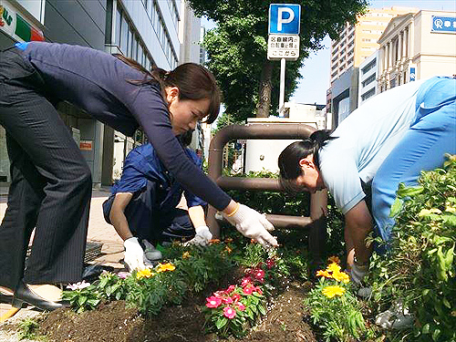 法人会では、『花いっぱい運動』と称して、中央区舞鶴地区の昭和通り沿いの花壇の植え替え作業を地域の方々の協力を得ながら、年3回実施しております。