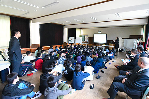 福岡中部法人会青年部では、2019年度、最初の租税教室を福岡市南区の老司小学校(6年生77名)にて行いました。 講師は、福岡中部法人会青年部の山口晴美(総務税制委員)が務めました。 総務税制委員会 委員長 今村渉