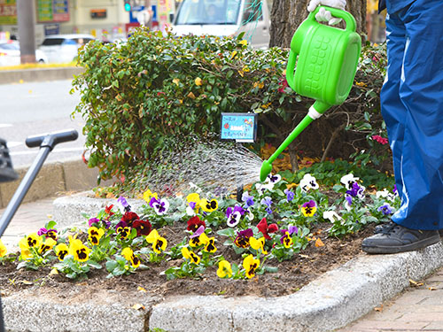 法人会では、『花いっぱい運動』と称して、中央区舞鶴地区の昭和通り沿いの花壇の植え替え作業を地域の方々の協力を得ながら、年3回実施しております。