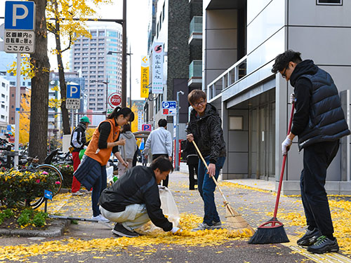 晴天の天気にも恵まれ、城北幼稚園(25名)、舞鶴保育園(25名)、舞鶴小学校5年生(80名)、福岡税務署、福岡中部法人会第三支部の中村工業様はじめ、ご近所の会員企業様、社会貢献委員会、そして福岡中部法人会青年部からは13名と多くの方に参加して頂きました。